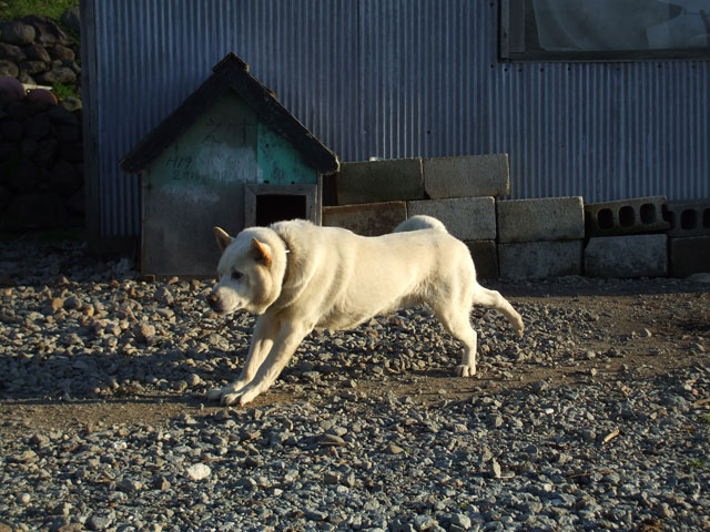 温泉犬が待っていました。