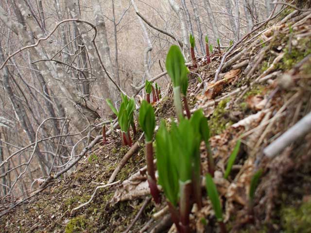 しかし、同じ場所に生えている、かたくりの花もまだつぼみです。