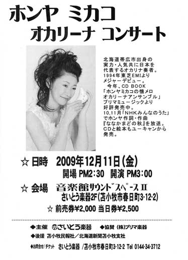 オカリナコンサートのポスターまでもらい、