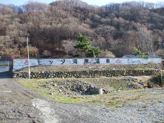 左手に「モッタ海岸温泉」と書かれた石垣を見たら左折です。