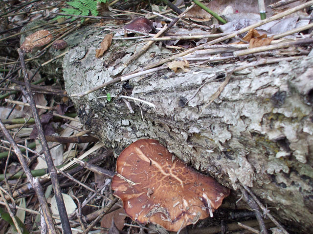倒木には何と野生のシイタケが出てました。
